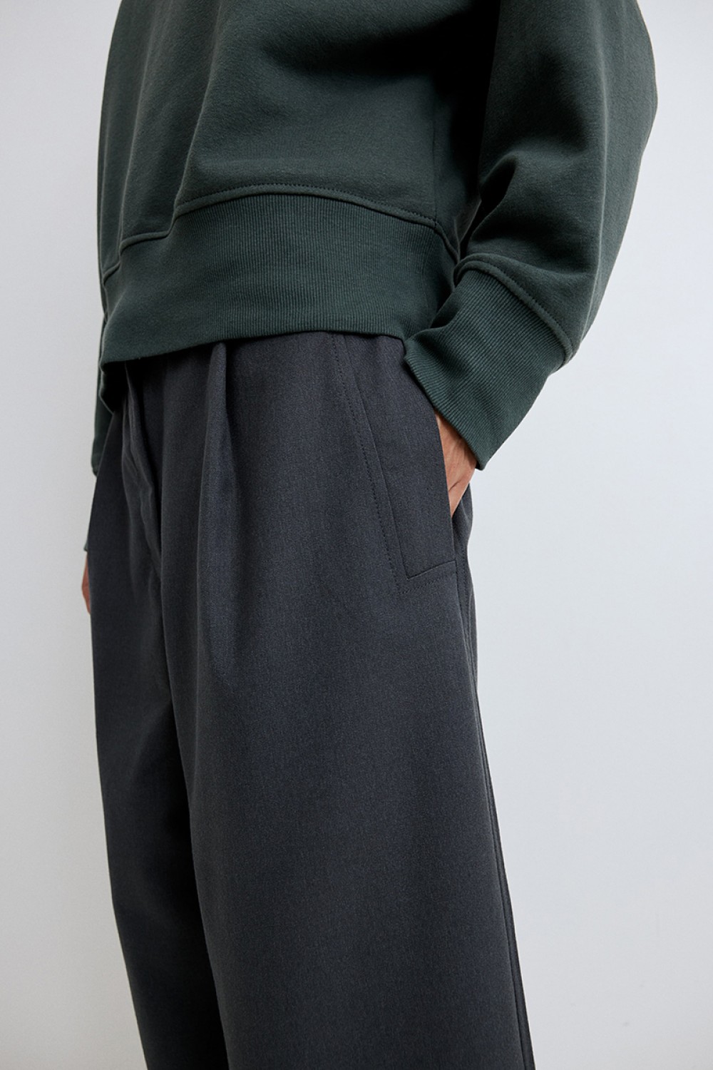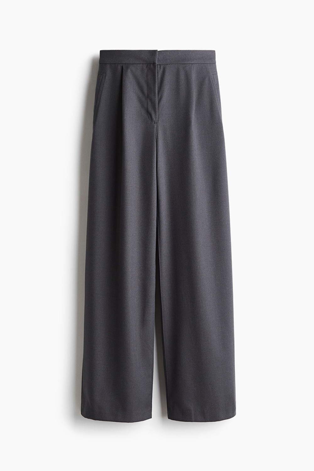 Wide-leg pants in soft twill with shaping darts at back. High waist, zip fly with concealed hook-and-bar fastener, and welt side pockets.