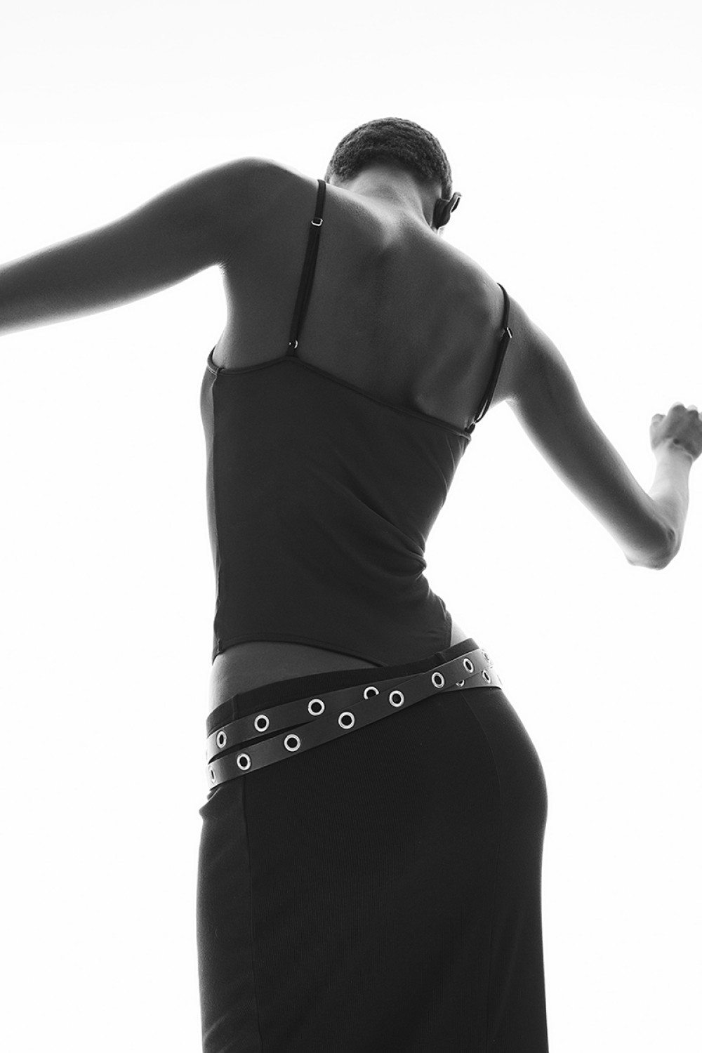 Fitted, calf-length skirt in ribbed jersey. Concealed, elasticized waistband and straight-cut hem with a high slit at back.