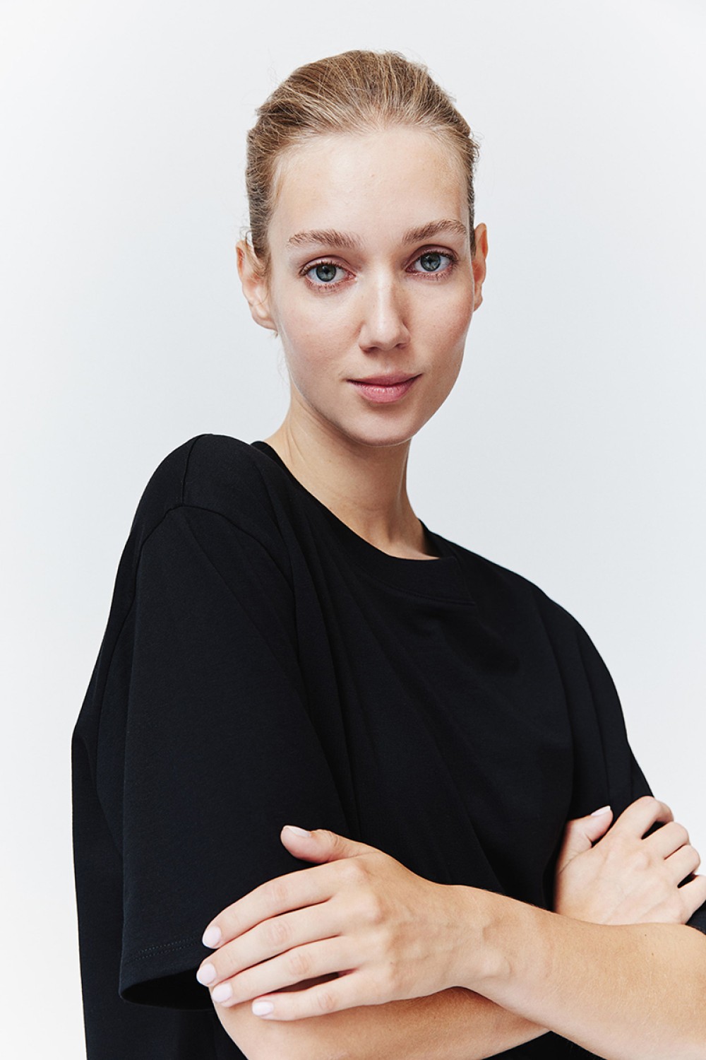Loose-fit T-shirt in soft cotton jersey with a unique nursing feature – double layers at front help retain warmth while allowing easier nursing access. Ribbed neckline and a straight-cut hem with slit at sides.