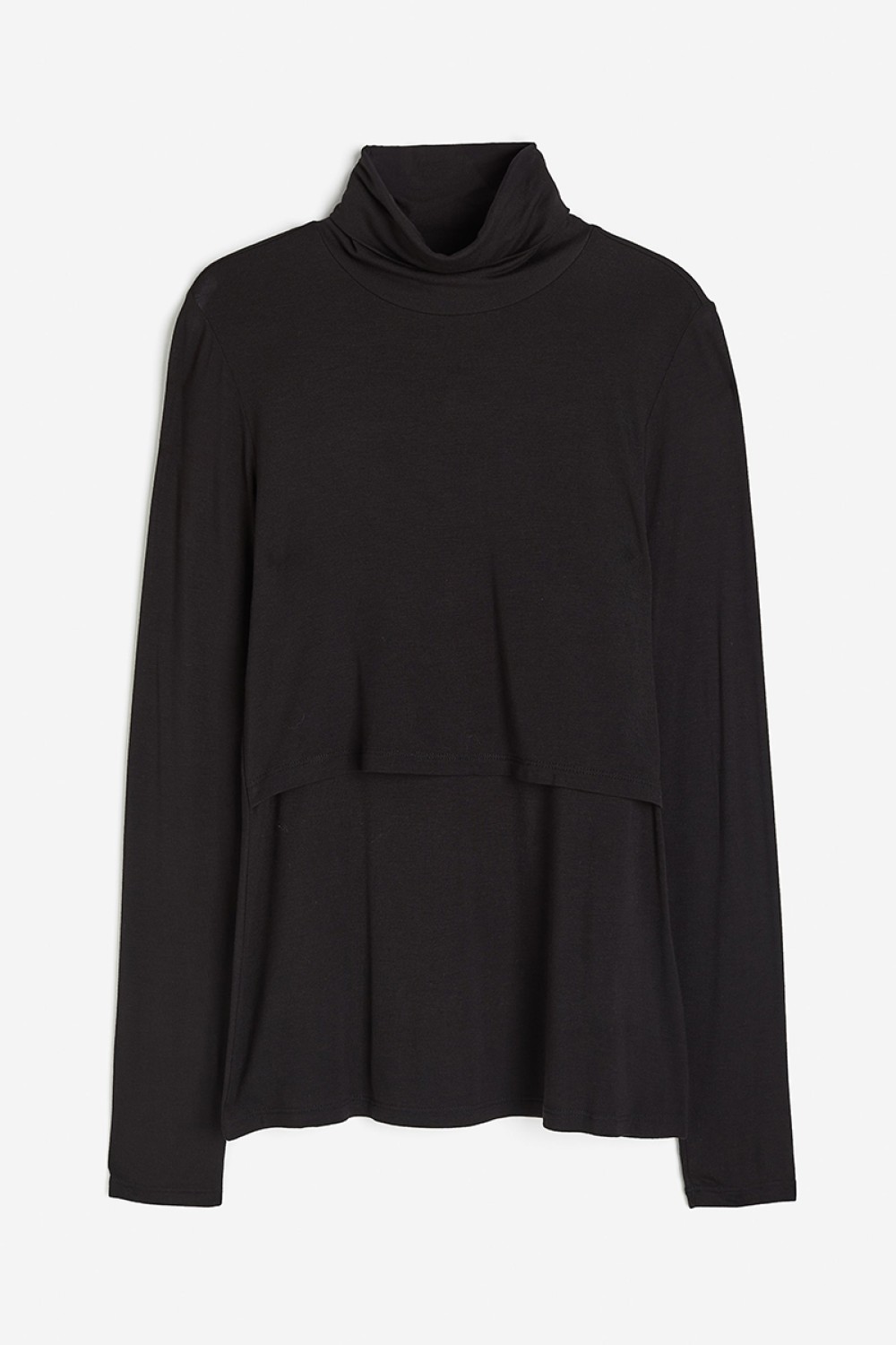 Fitted, turtleneck top in soft viscose jersey with a unique nursing feature – double layers at top help retain warmth while allowing easier nursing access. Long sleeves. For wear during pregnancy and when nursing.