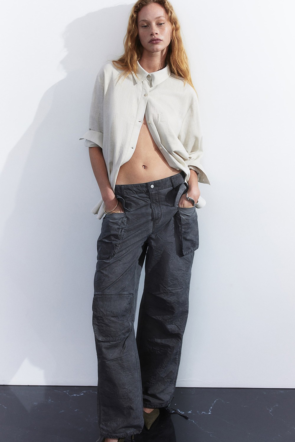 Loose-fit shirt in a woven viscose and linen blend. Collar, buttons at front, and an open chest pocket. Long sleeves and wide cuffs with slit and button. Straight-cut hem and vent at back.