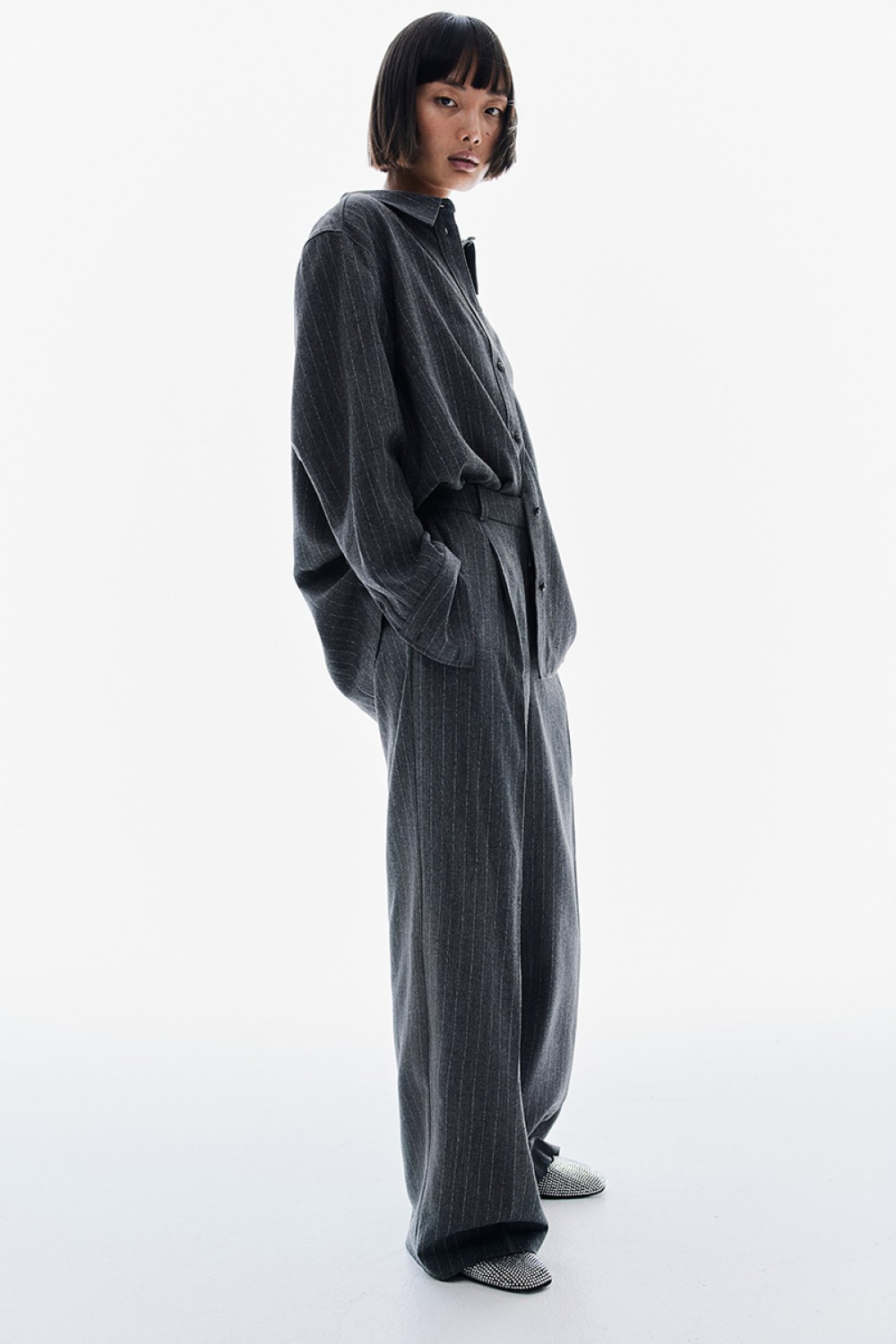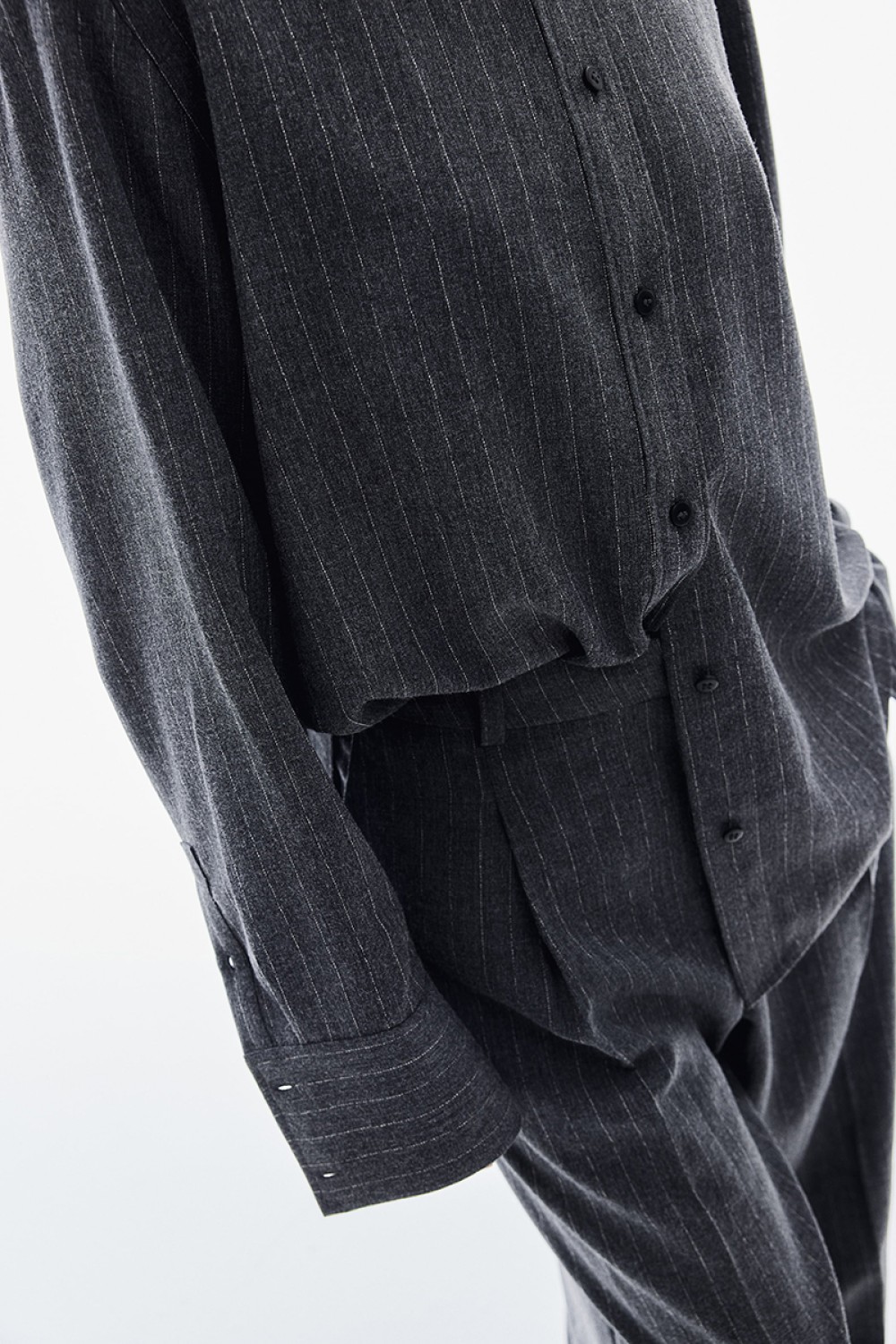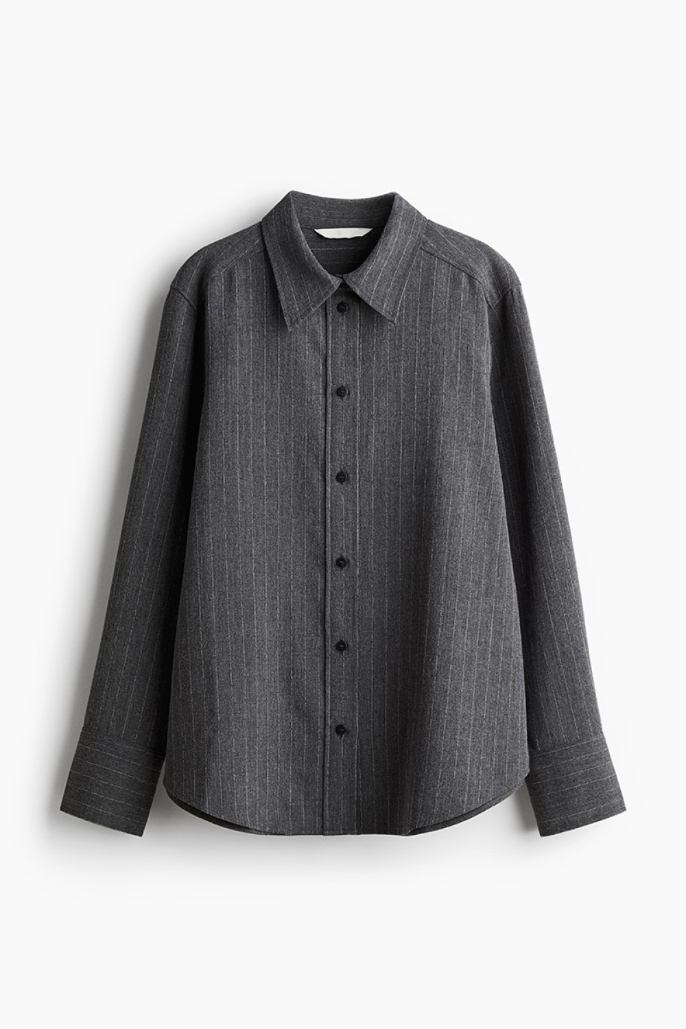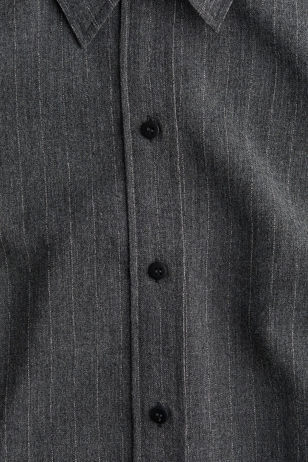 Loose-fit shirt in soft twill. Collar, buttons at front, and a double-layered yoke at back with box pleat. Long sleeves, sleeve placket with link button, and adjustable cuffs with buttons. Gently rounded hem.