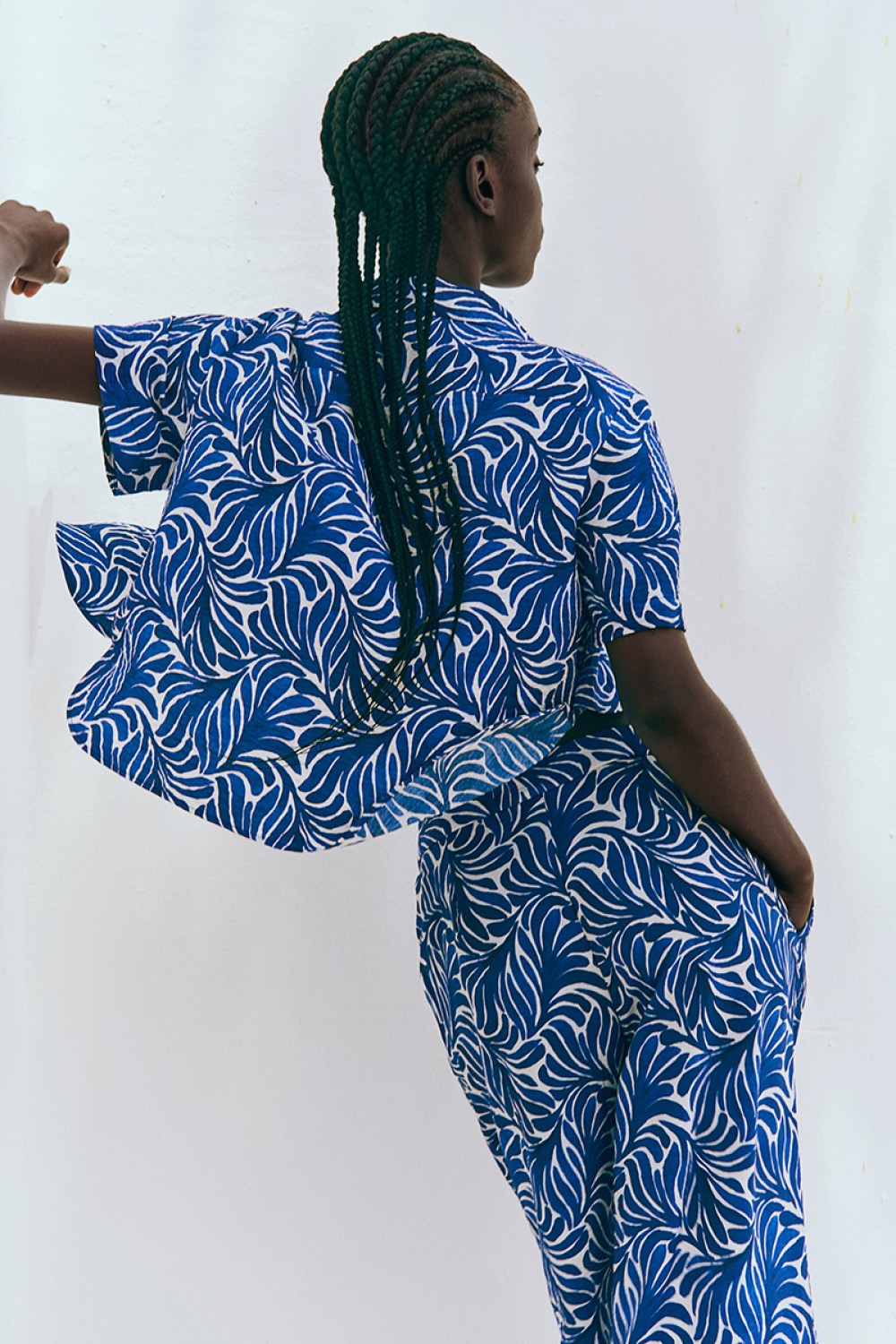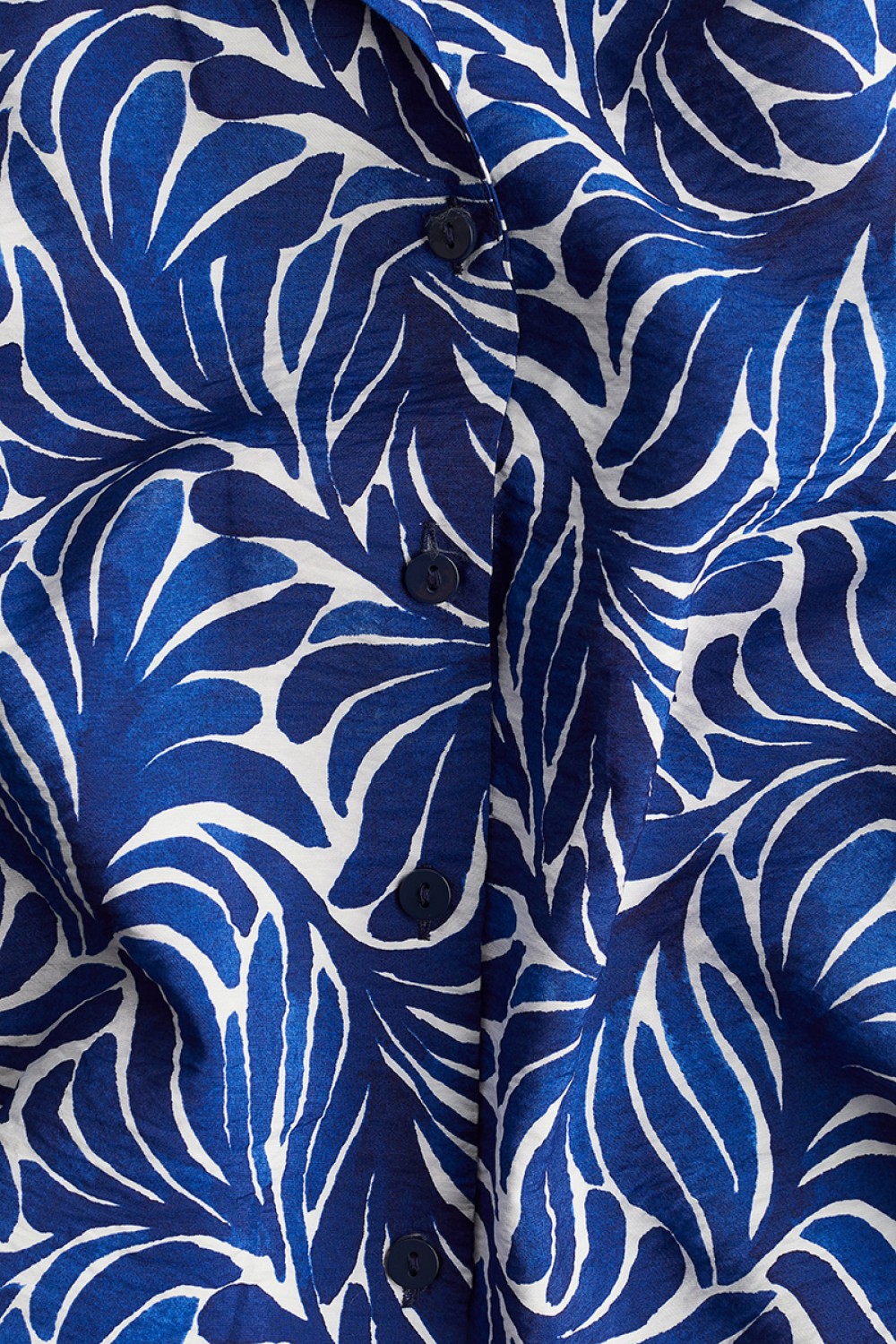 Shirt in woven fabric. Resort collar, buttons at front, and a double-layered yoke at back. Gently dropped shoulders and short sleeves. Curved hem with small slit at sides.
